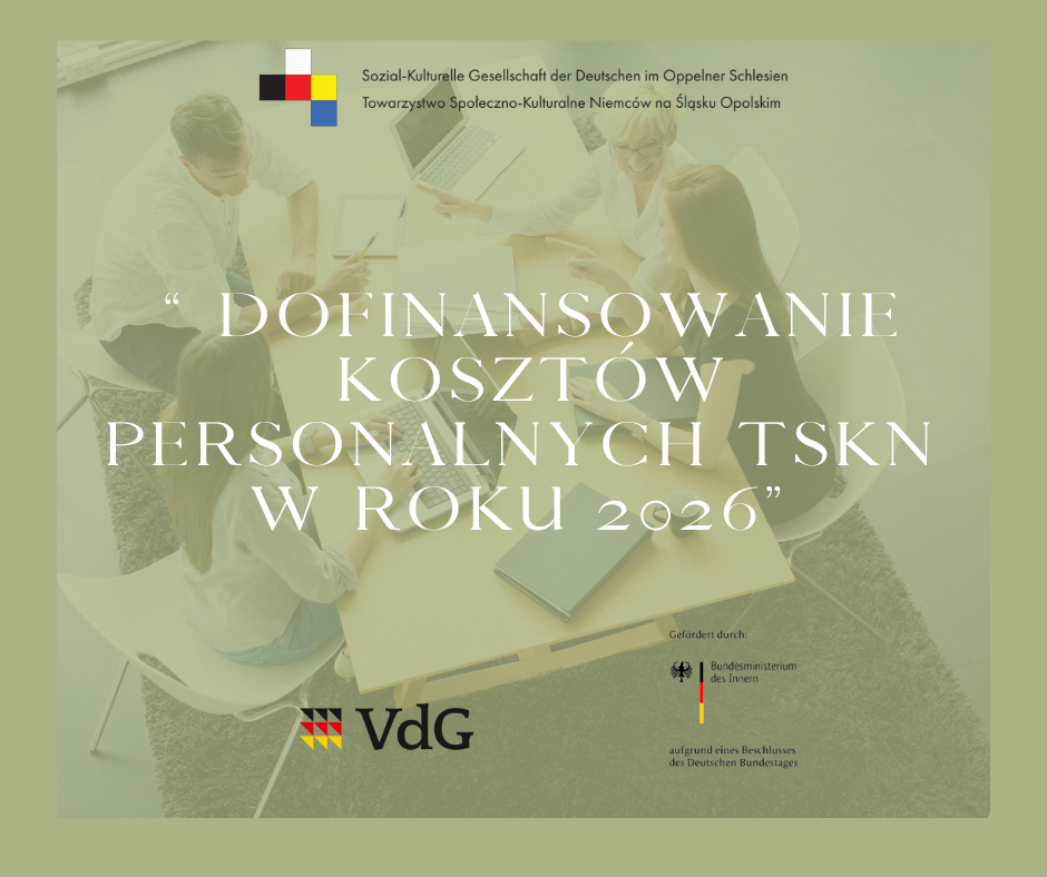 Am 30. März 2026 unterzeichnete die Sozial-Kulturelle Gesellschaft der Deutschen im Oppelner Schlesien (SKGD) einen weiteren bedeutenden Vertrag mit der Registernummer 40/2/2. Dieser Vertrag betrifft die Unterstützung der grundlegenden Pfeiler der Organisation, nämlich die Bezuschussung der Personalkosten der SKGD im Jahr 2026. Das Projekt wird mit Mitteln des Bundesministeriums des Innern durch den Verband der deutschen sozial-kulturellen Gesellschaften in Polen finanziert