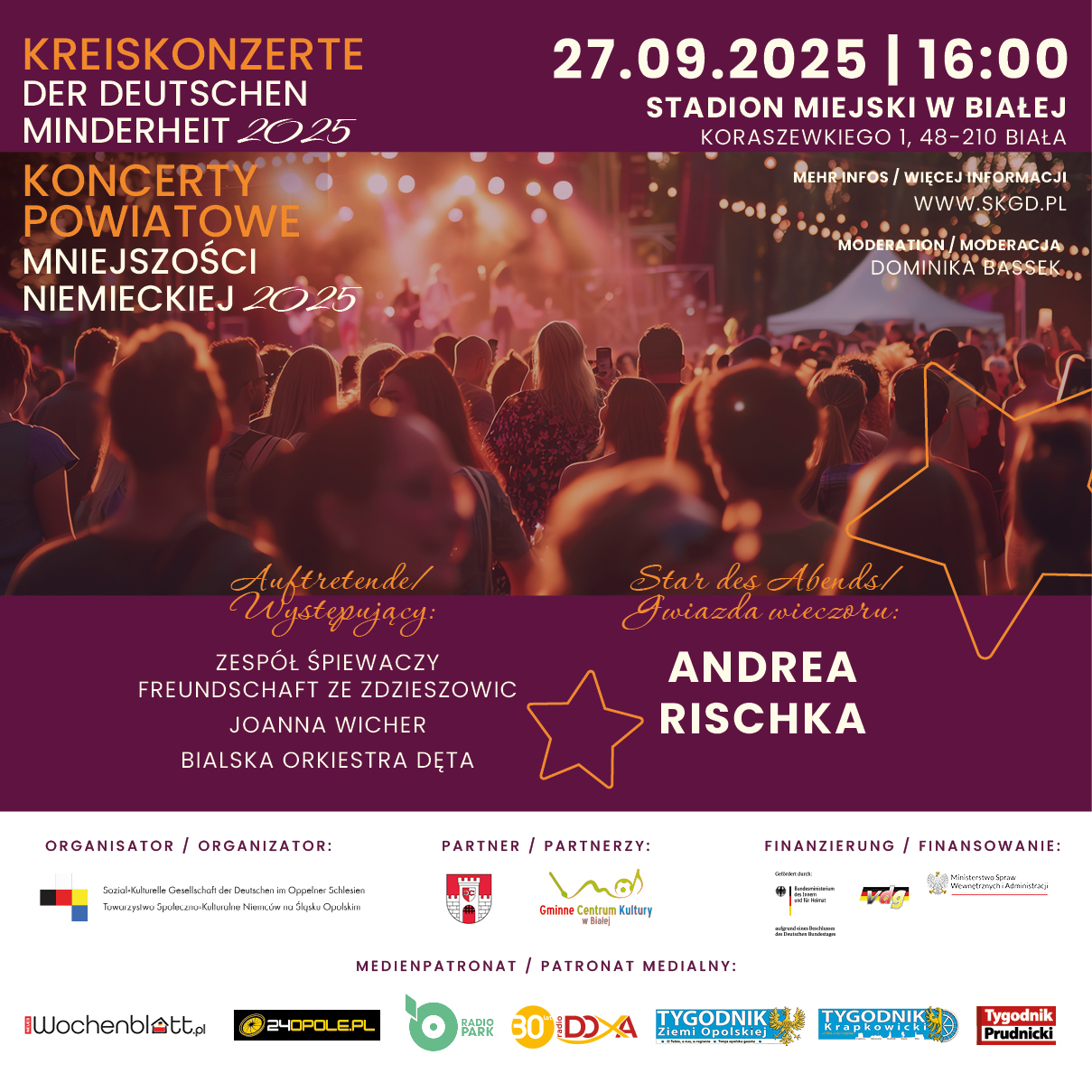 (Polski) Trzeci Koncert Powiatowy z cyklu Koncertów Powiatowych Mniejszości Niemieckiej 2025 odbędzie już w tę sobotę w Białej na Stadionie Miejskim o godz. 16:00