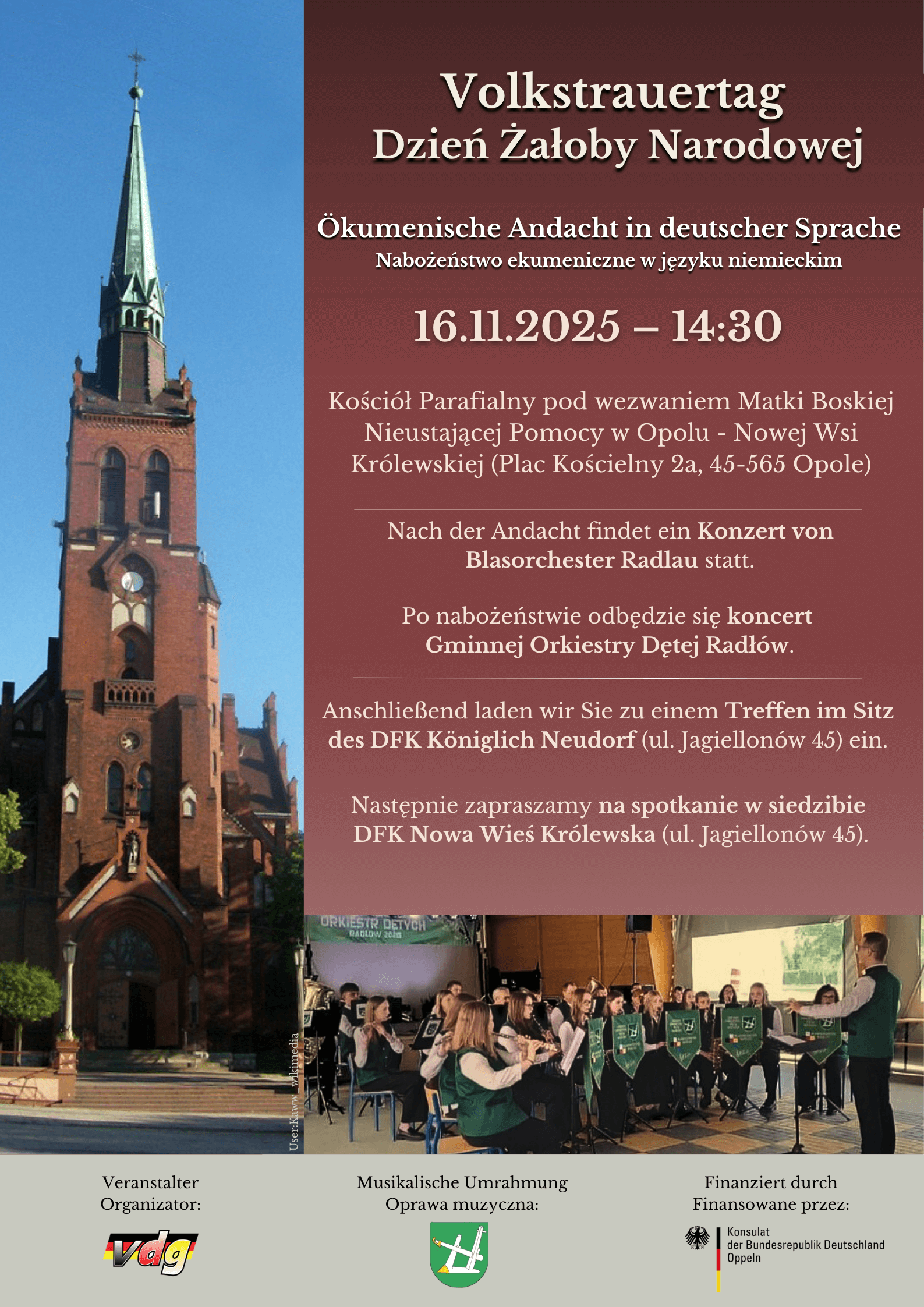 Wir laden Sie herzlich zu einer ökumenischen Andacht in deutscher Sprache ein, die am Sonntag, dem 16.11.2025, um 14:30...