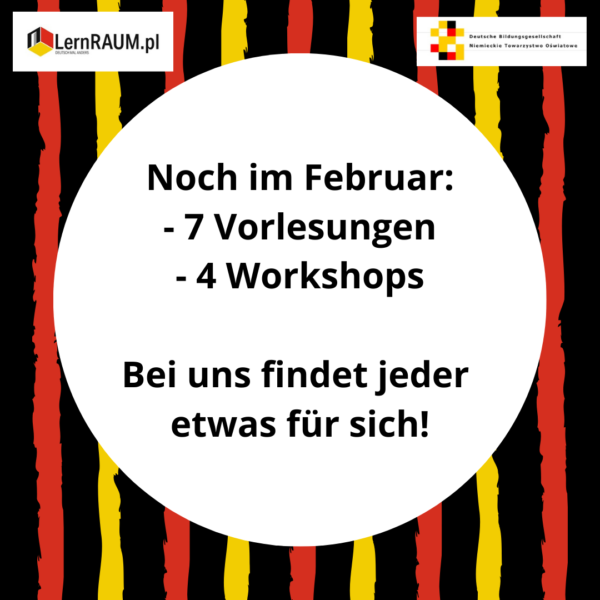 Ab 1. Februar organisieren wir in diesem Jahr die weitere Veranstaltungen im Rahmen des Projekts „LernRAUM.pl“. Noch im Februar warten auf Sie folgende Themen:
