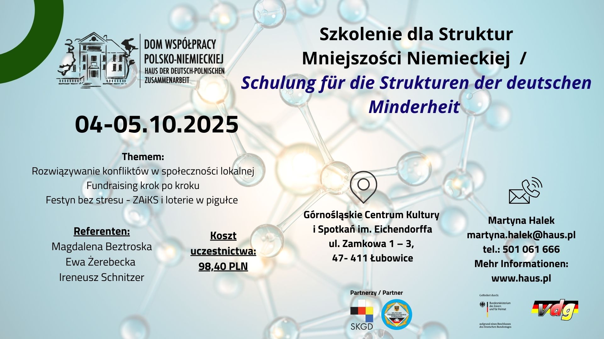 Dom Współpracy Polsko-Niemieckiej zaprasza na Szkolenie dla Struktur Mniejszości Niemieckiej