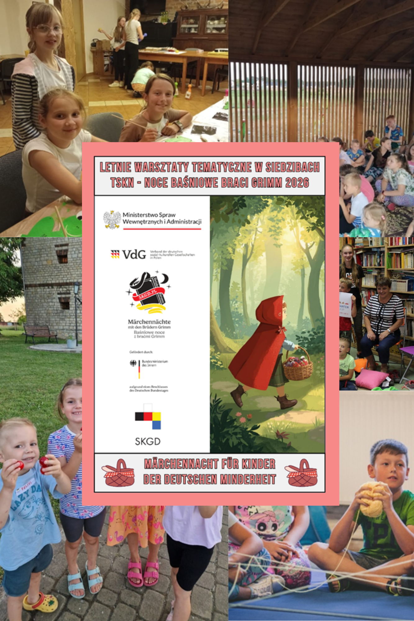 Dnia 23 kwietnia 2026 Towarzystwo Społeczno-Kulturalne Niemców na Śląsku Opolskim podpisało umowę nr 5-79/WMNiE 2026 z Ministerstwem Spraw Wewnętrznych i Administracji, Departament Wyznań Religijnych i Mniejszości Narodowych i Etnicznych na realizację zadania „Letnie warsztaty tematyczne w siedzibach TSKN- Noce baśniowe Braci Grimm 2026”.