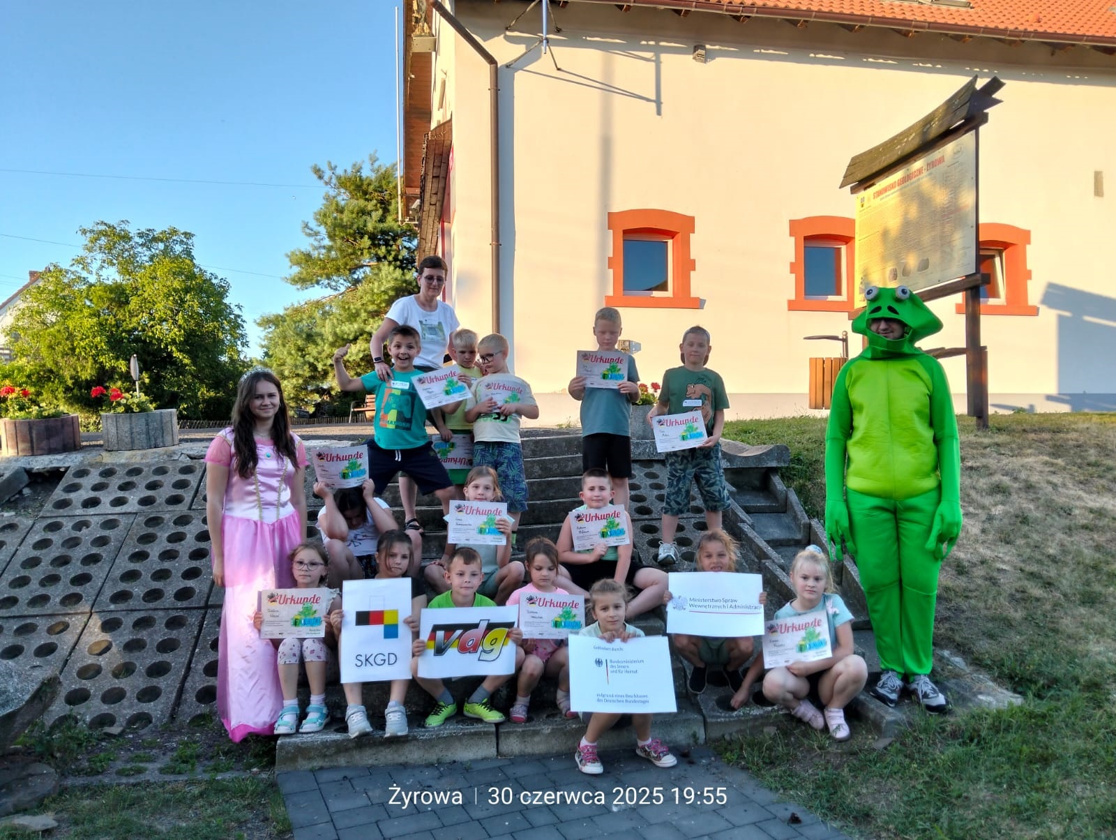 Am Freitag startete die 12. Edition des Projektes „Märchennächte mit Brüder Grimm”, das sich große Beliebtheit erfreut. Durch die Teilnahme haben die Kinder die Gelegenheit sich mit dem bekannten Märchen der Brüder Grimm – „Der Froschkönig” – bekannt zu machen, und anschließend durch thematische Spiele und interessante Animationen ihre Deutschkenntnisse zu verbessern. Indem sie die Zeit zusammen verbringen, haben sie auch die Möglichkeit, ihre Kreativität zu entfalten und ihrer Fantasie freien Lauf zu lassen. Die Kinder nehmen an diesem Projekt immer mit einem Lächeln und mit großem Engagement teil. Was man auf den Bildern sehr gut sehen kann. 😊🐝✨