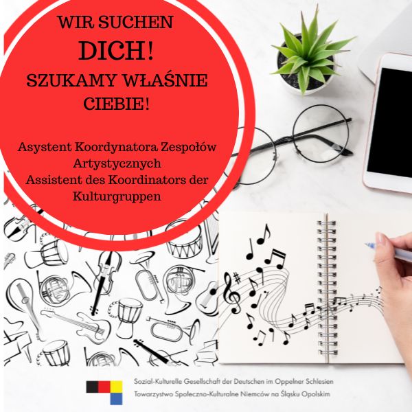 Towarzystwo Społeczno-Kulturalne Niemców na Śląsku Opolskim, największa organizacja pozarządowa w regionie, poszukuje pracownika do biura Zarządu na stanowisko Asystenta Koordynatora Zespołów Artystycznych.