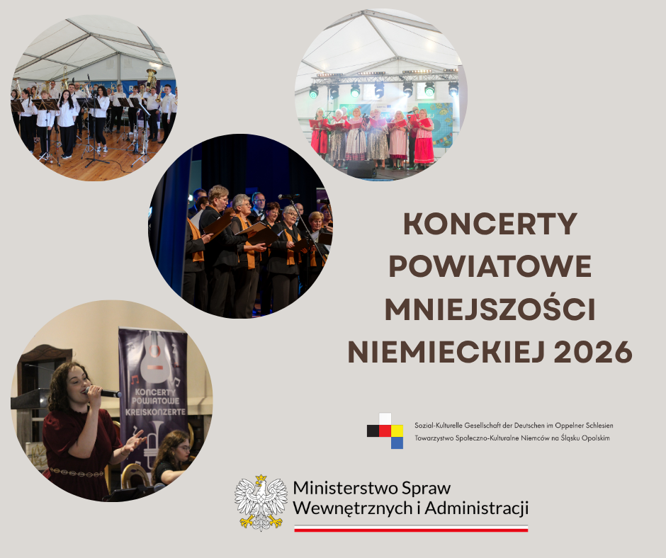 Dnia 08.04.2026 Towarzystwo Społeczno-Kulturalne Niemców na Śląsku Opolskim podpisało umowę nr 5-77/WMNiE/2026 z Ministerstwem Spraw Wewnętrznych i Administracji, Departament Wyznań Religijnych i Mniejszości Narodowych i Etnicznych na realizację zadania pn. “Koncerty powiatowe Mniejszości Niemieckiej 2026”.