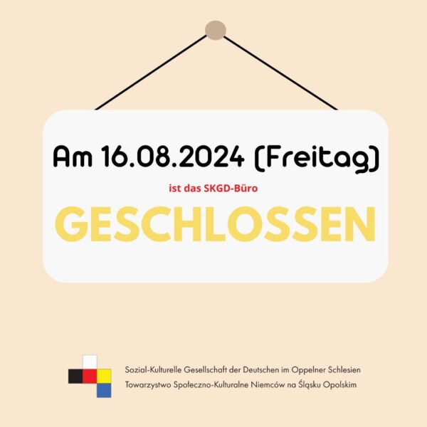 W dniu 2 maja 2025 (piątek) biuro Towarzystwa Społeczno-Kulturalnego Niemców na Śląsku Opolskim będzie nieczynne.